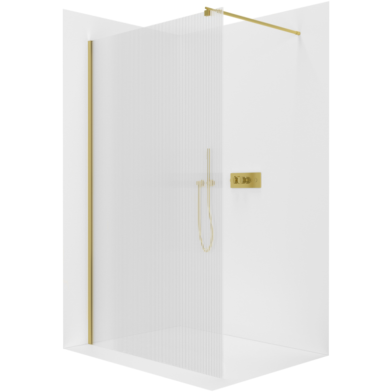 CERANO - Sprchová zástena Walk-in Onyx Round Ľ/P - 8 mm - guľatá vzpera - zlatá kartáčovaná, ryhované sklo - 50x200 cm