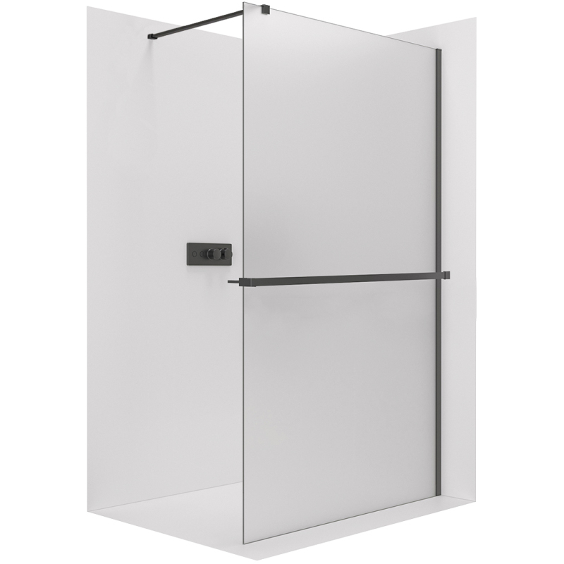 CERANO - Sprchová zástena Walk-in Onyx Cube Ľ/P - 8 mm + polička/držiak na uteráky - hranatá vzpera - čierna matná, mliečne sklo - 70x200 cm