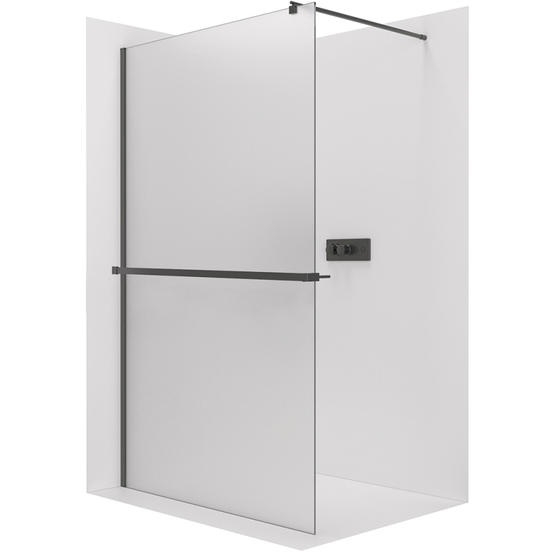 CERANO - Sprchová zástena Walk-in Onyx Round Ľ/P - 8 mm + polička/držiak na uteráky - guľatá vzpera - čierna matná, mliečne sklo - 80x200 cm