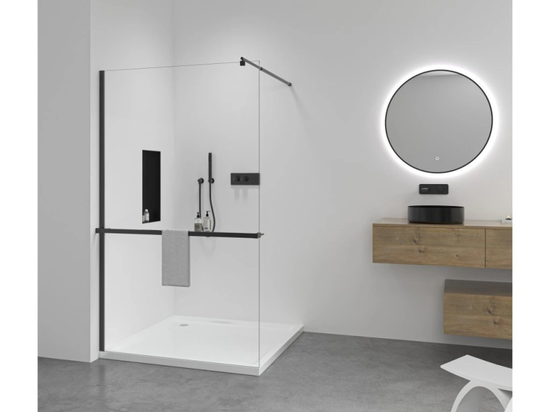 Inteligentné riešenie 2v1 pre sprchové zásteny. Z vonkajšej strany držiak na uteráky , zvnútra praktická polička na kozmetiku a drobnosti - všetko hneď po ruke. Vhodné pre sprchové zásteny s maximálnou hrúbkou skla 8 mm . Nastaviteľná šírka od 30 do 160 cm podľa typu zásteny. Úspora miesta, moderný vzhľad a praktické využitie v jednom.