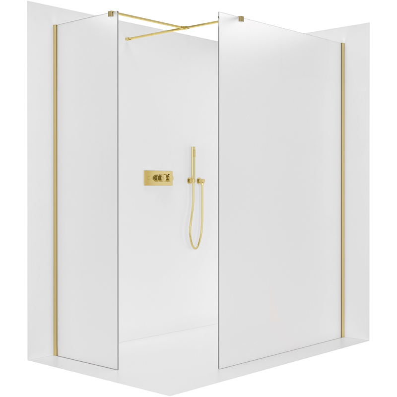 CERANO - Sprchová zástena Walk-in Onyx TL/P - 8 mm - hranatá vzpera - zlatá kartáčovaná, mliečne sklo - 150x30x200 cm