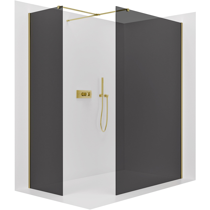 CERANO - Sprchová zástena Walk-in Onyx TL/P - 8 mm - hranatá vzpera - zlatá kartáčovaná, grafitové sklo - 150x120x200 cm