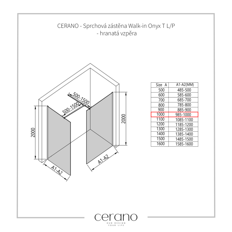 V rámci tejto série ponúkame širokú škálu rozmerov, aby sme uspokojili rôzne potreby našich zákazníkov. Všetky sprchové kúty, dvere a zásteny značky Cerano sú plne kompatibilné so sprchovými vaničkami Cerano v rovnakých rozmeroch, čo zaisťuje bezproblémovú inštaláciu a dokonalé zladenie. Sprchovací kút je možné navyše inštalovať flexibilne – buď na zodpovedajúcu sprchovú vaničku, alebo priamo na podlahu podľa vašich preferencií a možností kúpeľne.