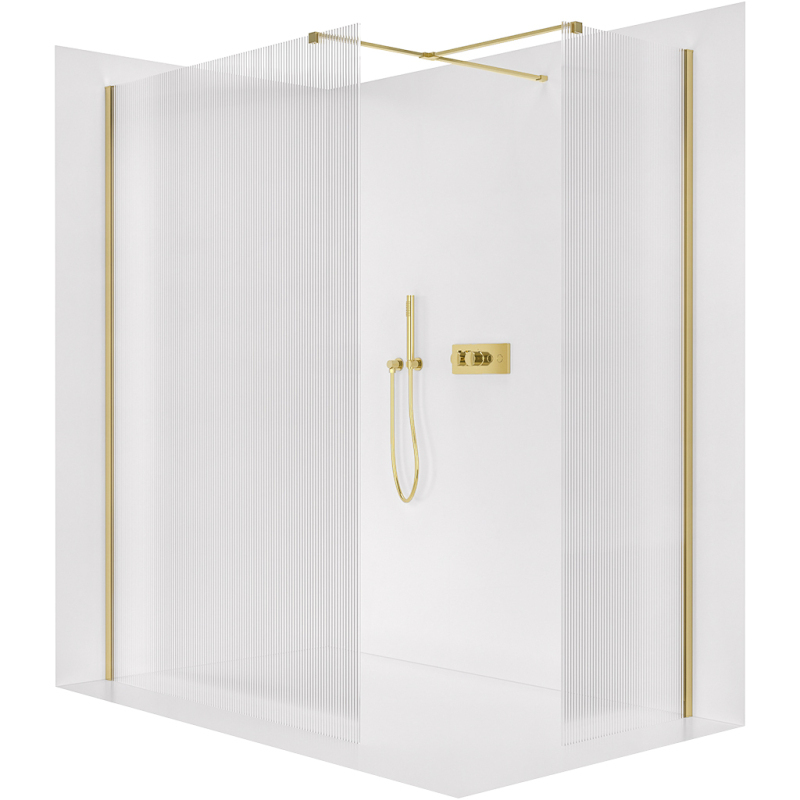 CERANO - Sprchová zástena Walk-in Onyx TL/P - 8 mm - hranatá vzpera - zlatá kartáčovaná, ryhované sklo - 70x50x200 cm