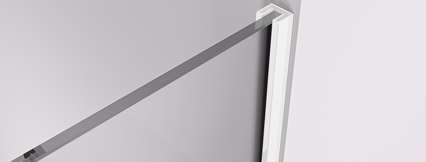 Konštrukcia sprchovej zásteny umožňuje pomocou profilov, ktoré je možné zapustiť úplne alebo len čiastočne (14 mm, do obkladov či dlažby), skryté uchytenie skla bez rušivých vzpier . Výsledkom je dizajnovo čisté a elegantné riešenie , ktoré podčiarkuje moderný vzhľad kúpeľne a zaisťuje maximálnu vizuálnu ľahkosť priestoru .