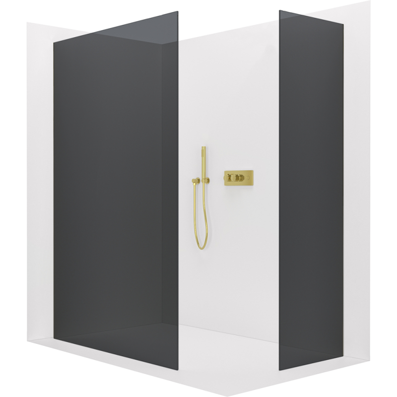 CERANO - Sprchová zástena Walk-in Crystal TL/P - 8 mm - bezvzperový systém - zlatá kartáčovaná, grafitové sklo - 150x100x200 cm