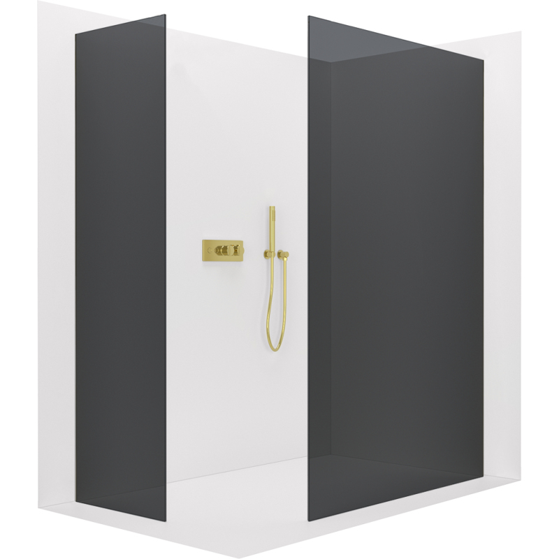 CERANO - Sprchová zástena Walk-in Crystal TL/P - 8 mm - bezvzperový systém - zlatá kartáčovaná, grafitové sklo - 150x150x200 cm