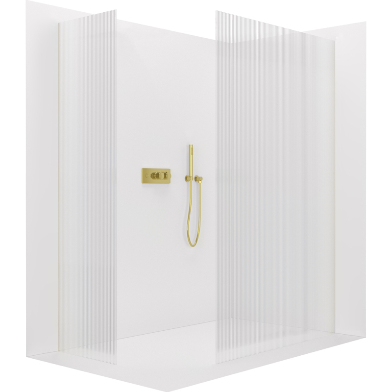CERANO - Sprchová zástena Walk-in Crystal TL/P - 8 mm - bezvzperový systém - zlatá kartáčovaná, ryhované sklo - 130x100x200 cm