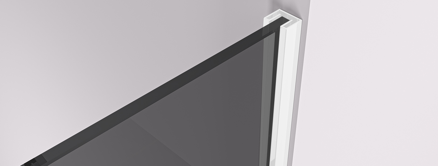 Konštrukcia sprchovej zásteny umožňuje pomocou profilov, ktoré je možné zapustiť úplne alebo len čiastočne (14 mm, do obkladov či dlažby), skryté uchytenie skla bez rušivých vzpier . Výsledkom je dizajnovo čisté a elegantné riešenie , ktoré podčiarkuje moderný vzhľad kúpeľne a zaisťuje maximálnu vizuálnu ľahkosť priestoru .