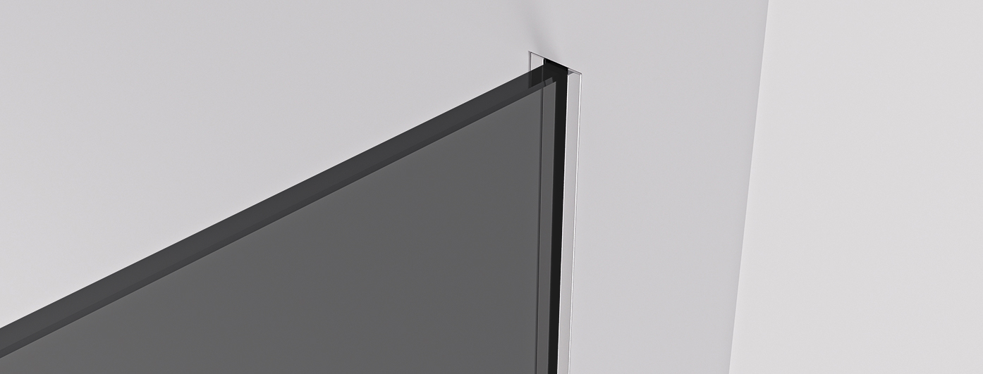 Konštrukcia sprchovej zásteny umožňuje pomocou profilov, ktoré je možné zapustiť úplne alebo len čiastočne (14 mm, do obkladov či dlažby), skryté uchytenie skla bez rušivých vzpier . Výsledkom je dizajnovo čisté a elegantné riešenie , ktoré podčiarkuje moderný vzhľad kúpeľne a zaisťuje maximálnu vizuálnu ľahkosť priestoru .