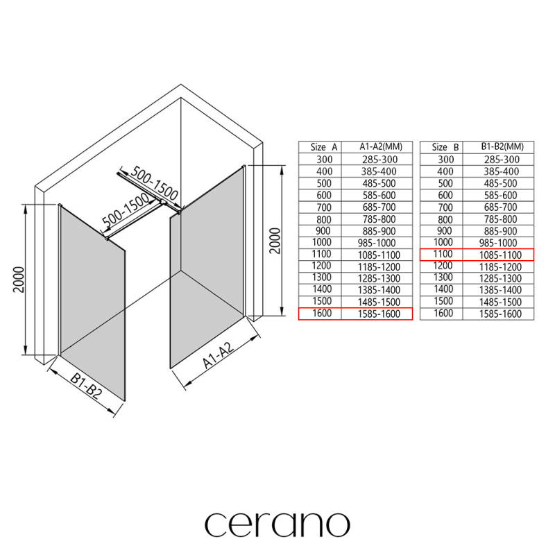 V rámci tejto série ponúkame širokú škálu rozmerov, aby sme uspokojili rôzne potreby našich zákazníkov. Všetky sprchové kúty, dvere a zásteny značky Cerano sú plne kompatibilné so sprchovými vaničkami Cerano v rovnakých rozmeroch, čo zaisťuje bezproblémovú inštaláciu a dokonalé zladenie. Sprchovací kút je možné navyše inštalovať flexibilne – buď na zodpovedajúcu sprchovú vaničku, alebo priamo na podlahu podľa vašich preferencií a možností kúpeľne.