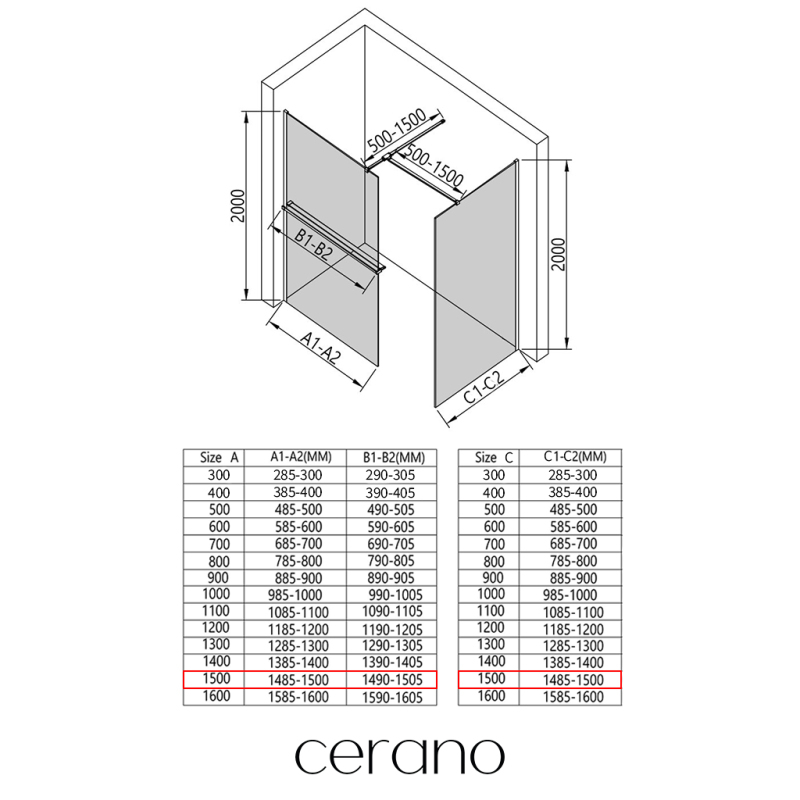 V rámci tejto série ponúkame širokú škálu rozmerov, aby sme uspokojili rôzne potreby našich zákazníkov. Všetky sprchové kúty, dvere a zásteny značky Cerano sú plne kompatibilné so sprchovými vaničkami Cerano v rovnakých rozmeroch, čo zaisťuje bezproblémovú inštaláciu a dokonalé zladenie. Sprchovací kút je možné navyše inštalovať flexibilne – buď na zodpovedajúcu sprchovú vaničku, alebo priamo na podlahu podľa vašich preferencií a možností kúpeľne.