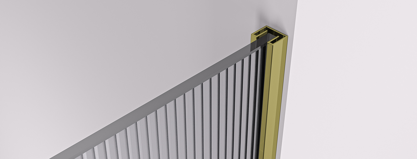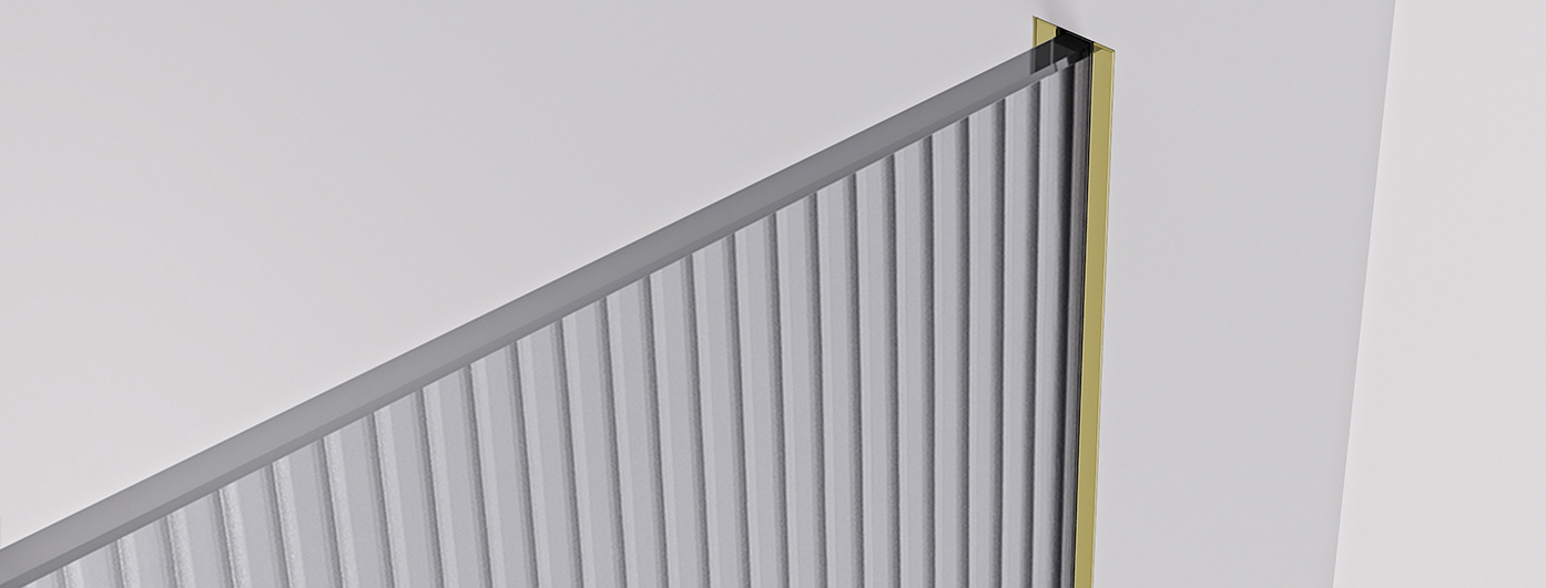 Konštrukcia sprchovej zásteny umožňuje pomocou profilov, ktoré je možné zapustiť úplne alebo len čiastočne (14 mm, do obkladov či dlažby), skryté uchytenie skla bez rušivých vzpier . Výsledkom je dizajnovo čisté a elegantné riešenie , ktoré podčiarkuje moderný vzhľad kúpeľne a zaisťuje maximálnu vizuálnu ľahkosť priestoru .