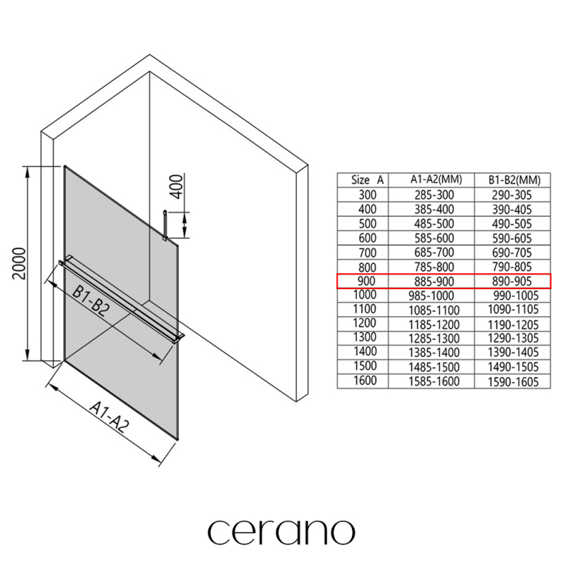 V rámci tejto série ponúkame širokú škálu rozmerov, aby sme uspokojili rôzne potreby našich zákazníkov. Všetky sprchové kúty, dvere a zásteny značky Cerano sú plne kompatibilné so sprchovými vaničkami Cerano v rovnakých rozmeroch, čo zaisťuje bezproblémovú inštaláciu a dokonalé zladenie. Sprchovací kút je možné navyše inštalovať flexibilne – buď na zodpovedajúcu sprchovú vaničku, alebo priamo na podlahu podľa vašich preferencií a možností kúpeľne.