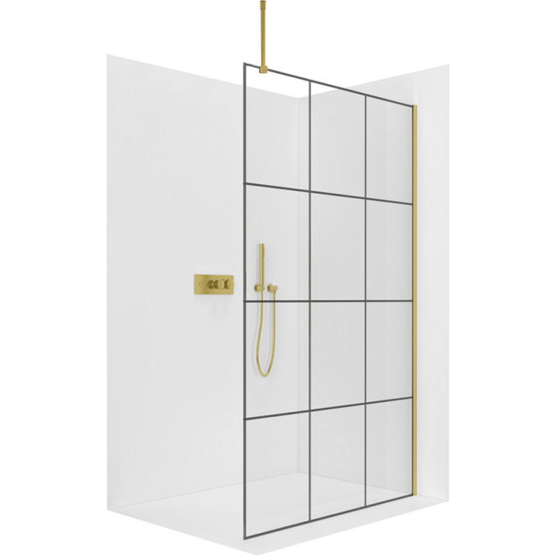 CERANO - Sprchová zástena Walk-in Onyx Top Round Ľ/P - 8 mm - guľatá vzpera - zlatá kartáčovaná, industriálne sklo - 110x200 cm