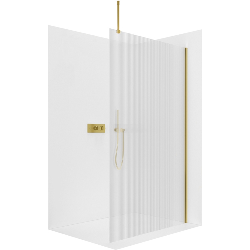 CERANO - Sprchová zástena Walk-in Onyx Top Round Ľ/P - 8 mm - guľatá vzpera - zlatá kartáčovaná, ryhované sklo - 150x200 cm