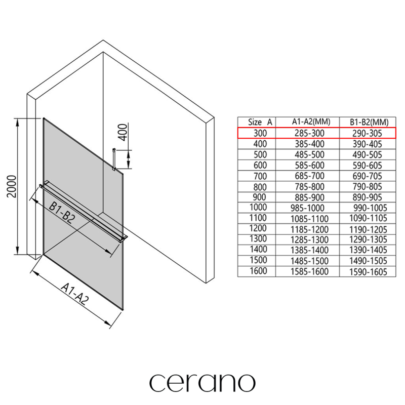 V rámci tejto série ponúkame širokú škálu rozmerov, aby sme uspokojili rôzne potreby našich zákazníkov. Všetky sprchové kúty, dvere a zásteny značky Cerano sú plne kompatibilné so sprchovými vaničkami Cerano v rovnakých rozmeroch, čo zaisťuje bezproblémovú inštaláciu a dokonalé zladenie. Sprchovací kút je možné navyše inštalovať flexibilne – buď na zodpovedajúcu sprchovú vaničku, alebo priamo na podlahu podľa vašich preferencií a možností kúpeľne.