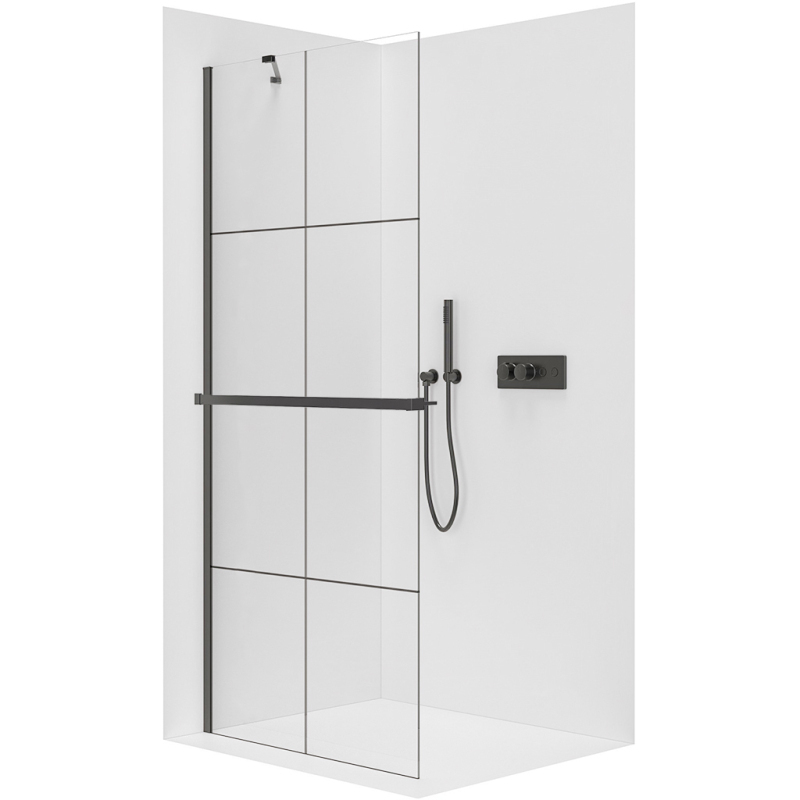 CERANO - Sprchová zástena Walk-in Onyx YL/P - 8 mm + polička/držiak na uteráky - čierna matná, industriálne sklo - 120x200 cm