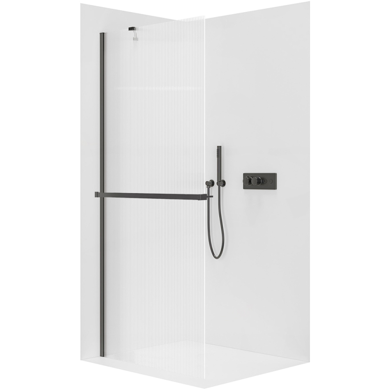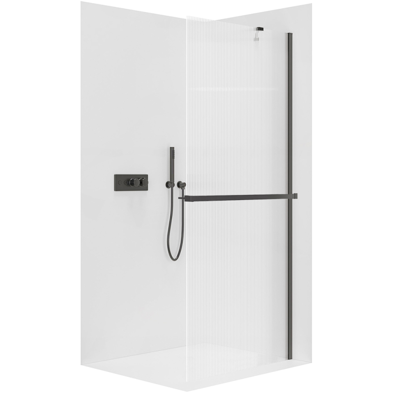 CERANO - Sprchová zástena Walk-in Onyx YL/P - 8 mm + polička / držiak na uteráky - čierna matná, ryhované sklo - 100x200 cm