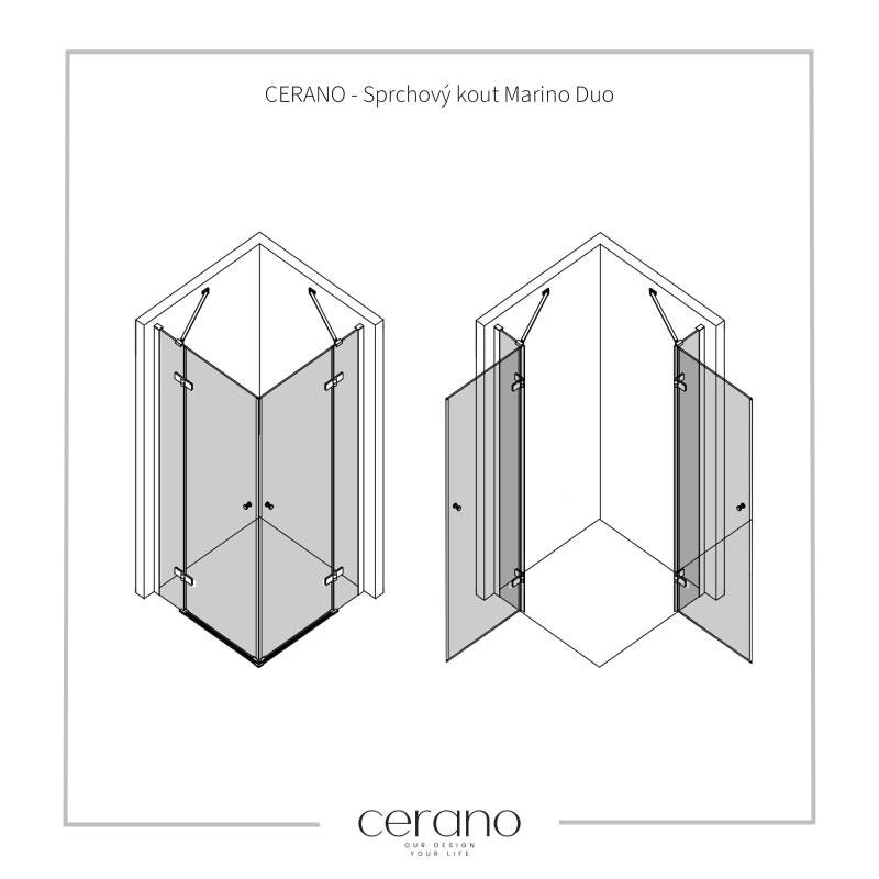 expedícia do 10 dníCERANO - Sprchovací kút Marino Duo Ľ/P - 6 mm - chróm, transparentné sklo - 100x100x190 cm - pántový