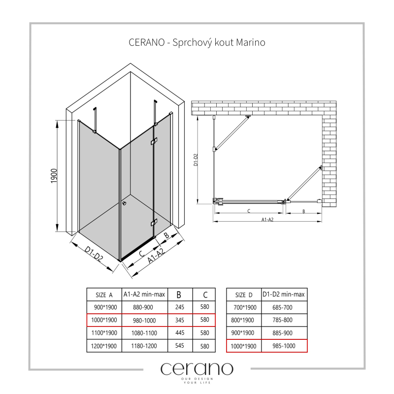 V rámci tejto série ponúkame širokú škálu rozmerov, aby sme uspokojili rôzne potreby našich zákazníkov. Všetky sprchové kúty, dvere a zásteny značky CERANO sú plne kompatibilné so sprchovými vaničkami CERANO v rovnakých rozmeroch, čo zaisťuje bezproblémovú inštaláciu a dokonalé zladenie. Sprchovací kút je možné navyše inštalovať flexibilne – buď na zodpovedajúcu sprchovú vaničku, alebo priamo na podlahu podľa vašich preferencií a možností kúpeľne.