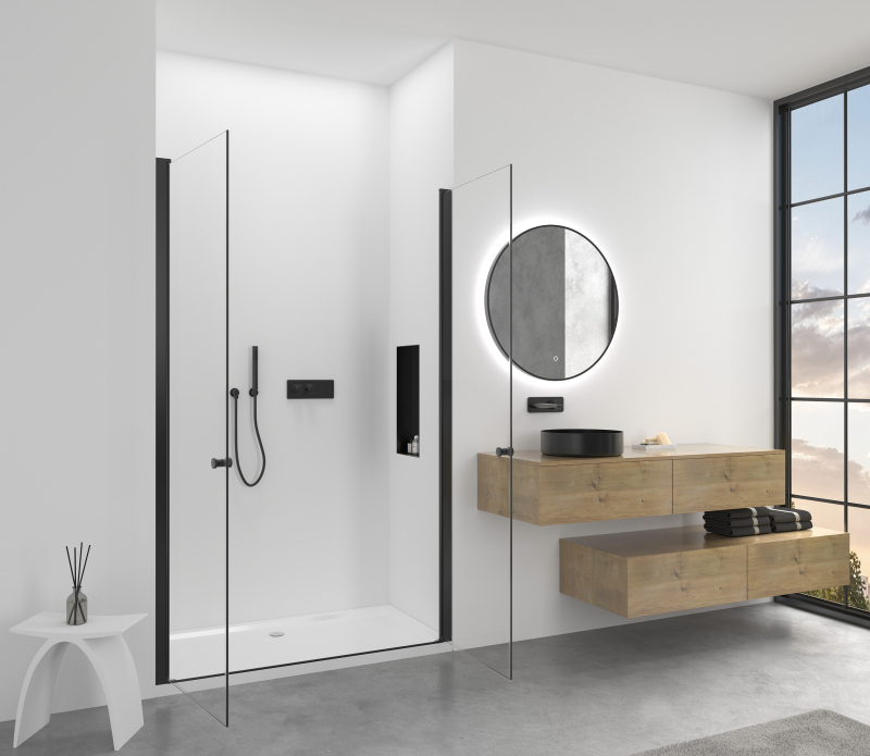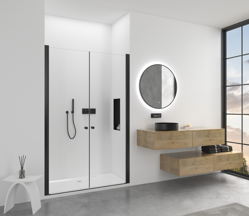 Dvere je možné otvárať dovnútra aj von, čo poskytuje maximálnu flexibilitu pri vstupe a pomáha minimalizovať únik vody.
