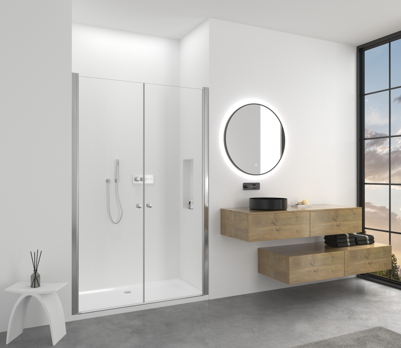 Dvere je možné otvárať dovnútra aj von, čo poskytuje maximálnu flexibilitu pri vstupe a pomáha minimalizovať únik vody.
