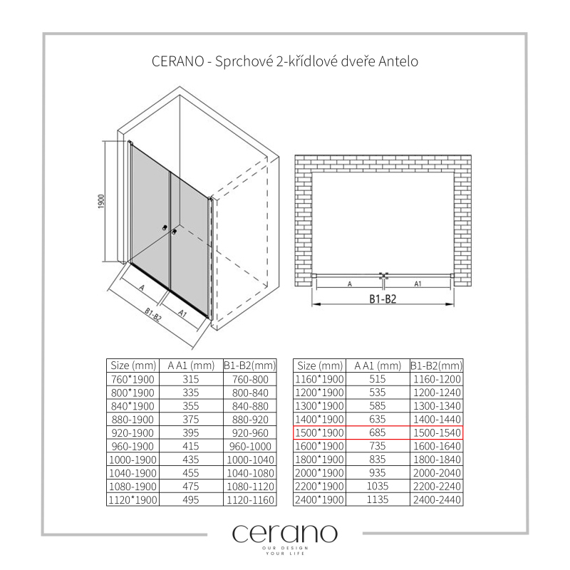 V rámci tejto série ponúkame širokú škálu rozmerov, aby sme uspokojili rôzne potreby našich zákazníkov. Všetky sprchové kúty, dvere a zásteny značky CERANO sú plne kompatibilné so sprchovými vaničkami CERANO v rovnakých rozmeroch, čo zaisťuje bezproblémovú inštaláciu a dokonalé zladenie.