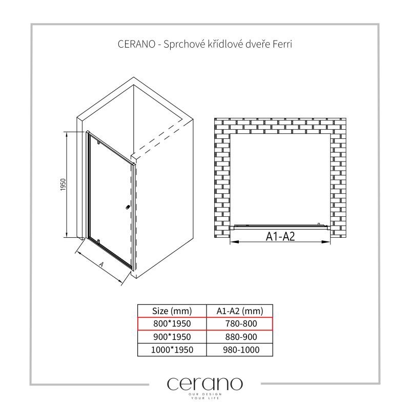 V rámci tejto série ponúkame širokú škálu rozmerov, aby sme uspokojili rôzne potreby našich zákazníkov. Všetky sprchové kúty, dvere a zásteny značky CERANO sú plne kompatibilné so sprchovými vaničkami CERANO v rovnakých rozmeroch, čo zaisťuje bezproblémovú inštaláciu a dokonalé zladenie. Sprchovací kút je možné navyše inštalovať flexibilne – buď na zodpovedajúcu sprchovú vaničku, alebo priamo na podlahu podľa vašich preferencií a možností kúpeľne.