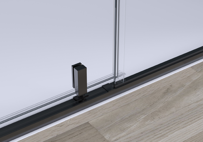 Sklo sa pri montáži posadzuje na gumové podložky , ktoré slúžia na jeho presné, stabilné a bezpečné usadenie. Následne sa škáry utesnia sanitárnym transparentným silikónom , ktorý zaistí vodotesnosť a čistý vzhľad.