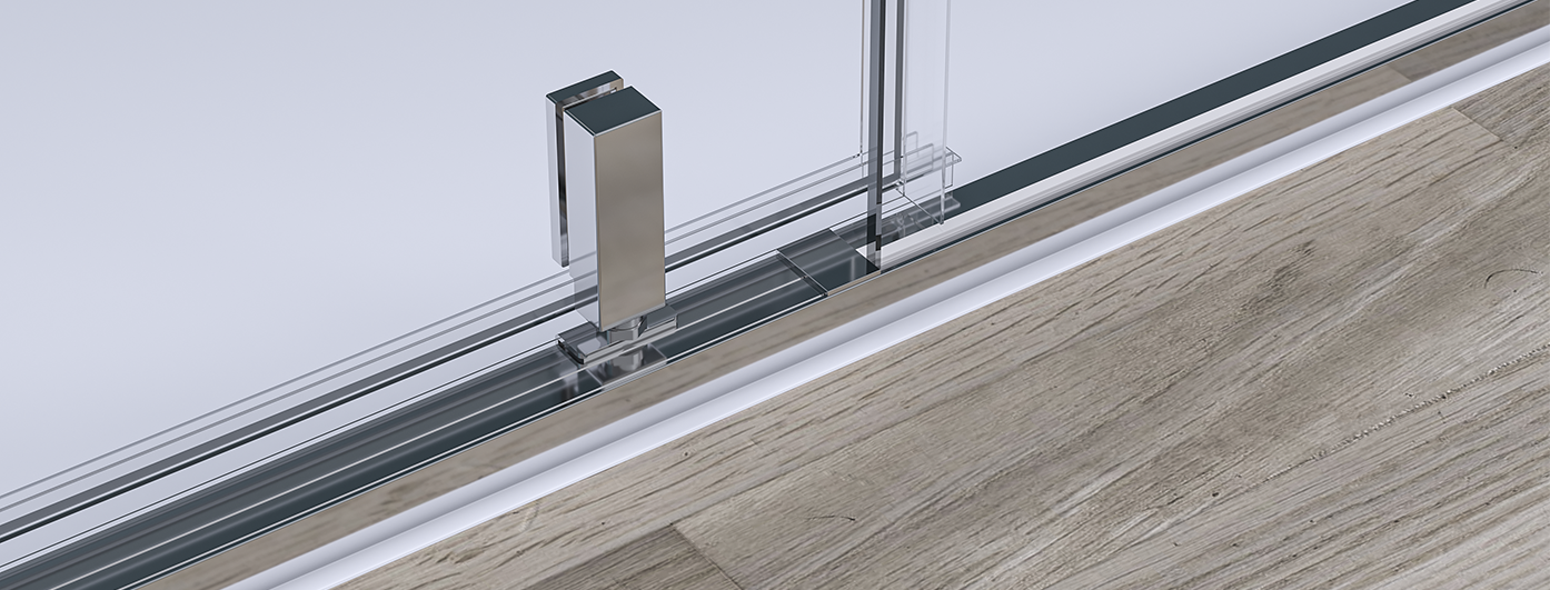 Sklo sa pri montáži posadzuje na gumové podložky , ktoré slúžia na jeho presné, stabilné a bezpečné usadenie. Následne sa škáry utesnia sanitárnym transparentným silikónom , ktorý zaistí vodotesnosť a čistý vzhľad.