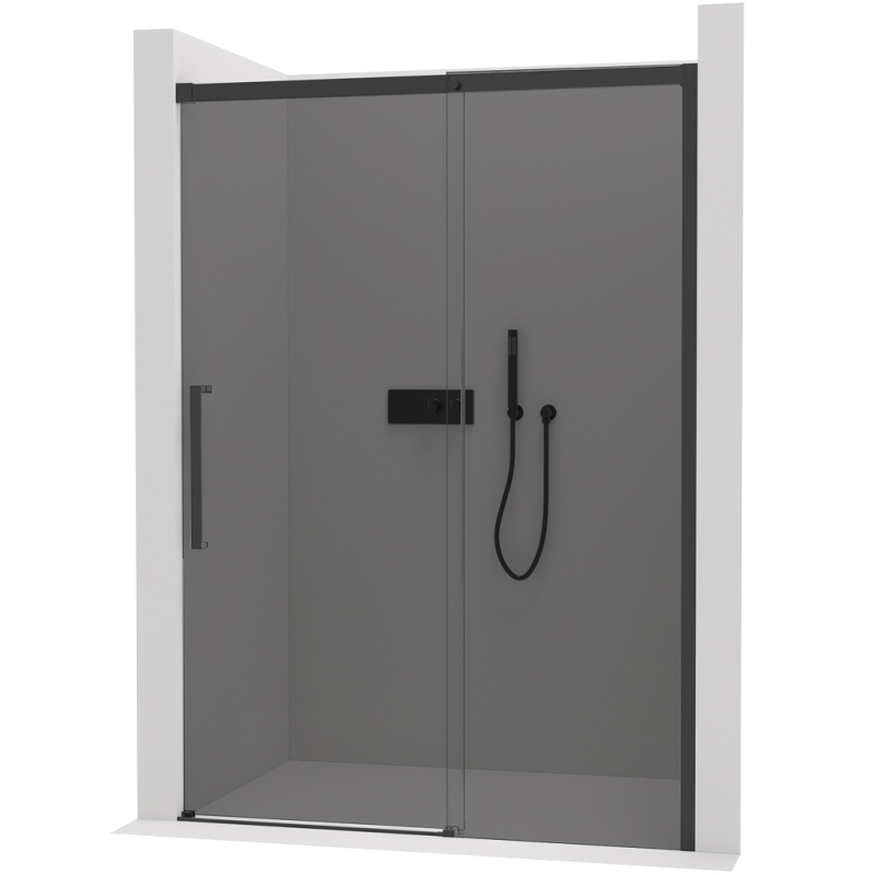 CERANO - Sprchové posuvné dvere Lantono Ľ/P - 8 mm - Soft-Close - čierna matná, grafitové sklo - 130x195 cm