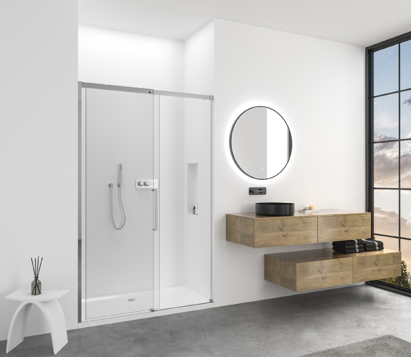 Posuvné dvere sprchového kúta fungujú na klznom mechanizme, ktorý umožňuje ich hladký pohyb po špeciálne navrhnutých koľajniciach. Vďaka tomu, že sa posúvajú pozdĺž steny, nevyžadujú žiadny dodatočný priestor na otváranie. Sú preto ideálnou voľbou pre kúpeľne s obmedzeným priestorom.