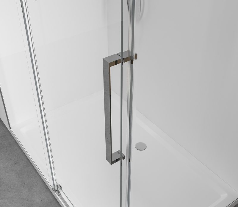 Elegantná kovová rukoväť, spájajúca praktickosť s moderným dizajnom vyrobená z kvalitného kovu, doplnená o odolnú povrchovú úpravu, zaručuje nielen pohodlné používanie, ale aj harmonicky dopĺňa celkový štýl sprchového kúta.
