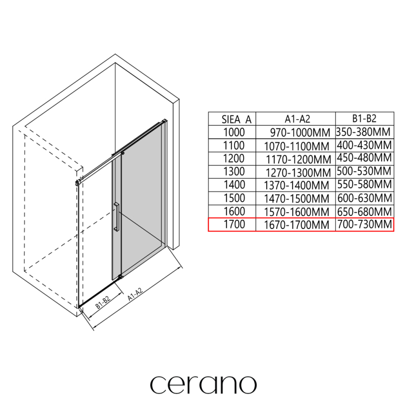 V rámci tejto série ponúkame širokú škálu rozmerov, aby sme uspokojili rôzne potreby našich zákazníkov. Všetky sprchové kúty, dvere a zásteny značky CERANO sú plne kompatibilné so sprchovými vaničkami CERANO v rovnakých rozmeroch, čo zaisťuje bezproblémovú inštaláciu a dokonalé zladenie. Sprchovací kút je možné navyše inštalovať flexibilne – buď na zodpovedajúcu sprchovú vaničku, alebo priamo na podlahu podľa vašich preferencií a možností kúpeľne.