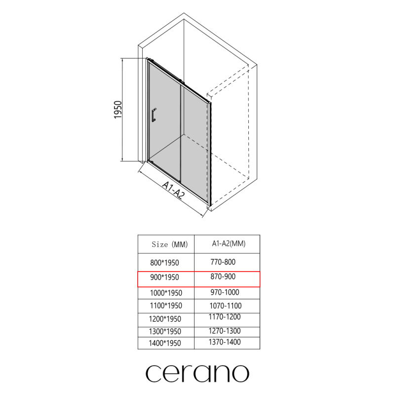 CERANO - Sprchové posuvné dvere Orlano L/P - 5 mm - čierna matná, transparentné sklo - 90x195 cm