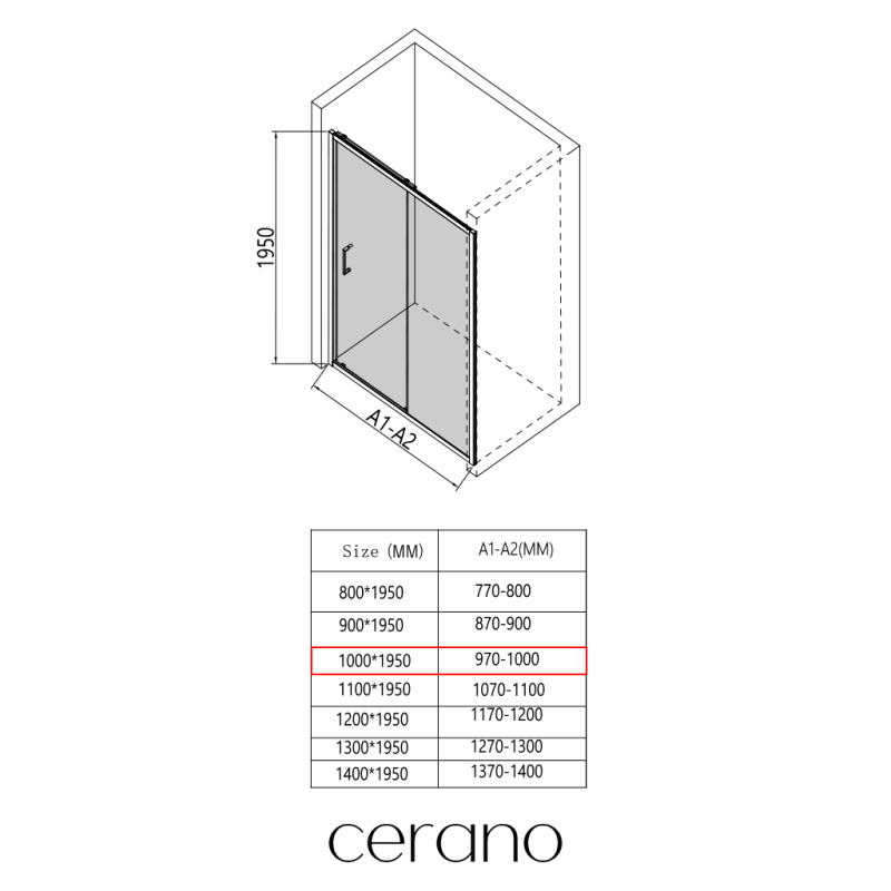 CERANO - Sprchové posuvné dvere Orlano L/P - 5 mm - chróm, transparentné sklo - 100x195 cm