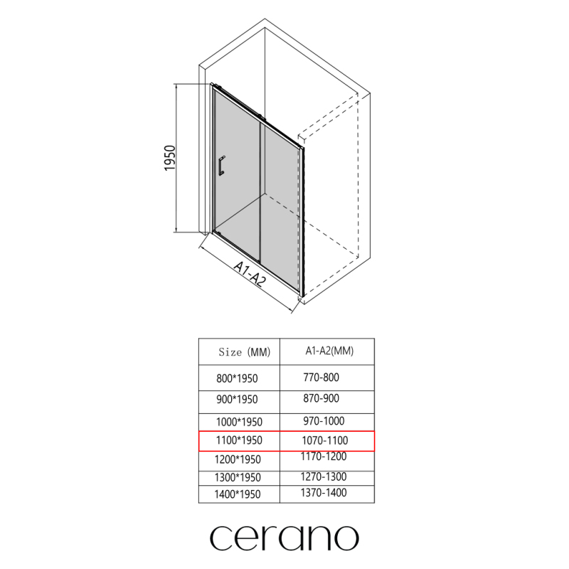 CERANO - Sprchové posuvné dvere Orlano Ľ/P - 5 mm - chróm, transparentné sklo - 110x195 cm