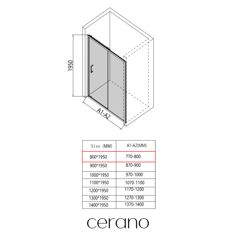 CERANO - Sprchové posuvné dvere Orlano L/P - 5 mm - chróm, transparentné sklo - 80x195 cm