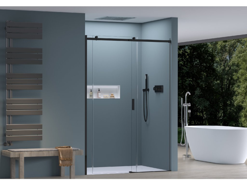 CERANO - Sprchové posuvné dvere Santoro Ľ/P - 8 mm - čierna matná, transparentné sklo - 100x195 cm
