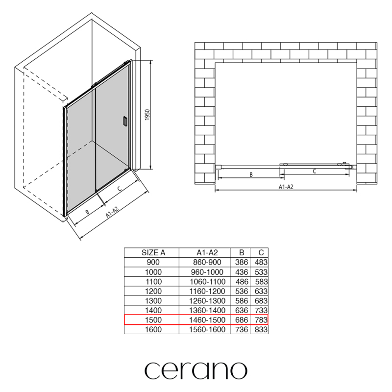 V rámci tejto série ponúkame širokú škálu rozmerov, aby sme uspokojili rôzne potreby našich zákazníkov. Všetky sprchové kúty, dvere a zásteny značky CERANO sú plne kompatibilné so sprchovými vaničkami CERANO v rovnakých rozmeroch, čo zaisťuje bezproblémovú inštaláciu a dokonalé zladenie. Sprchovací kút je možné navyše inštalovať flexibilne – buď na zodpovedajúcu sprchovú vaničku, alebo priamo na podlahu podľa vašich preferencií a možností kúpeľne.