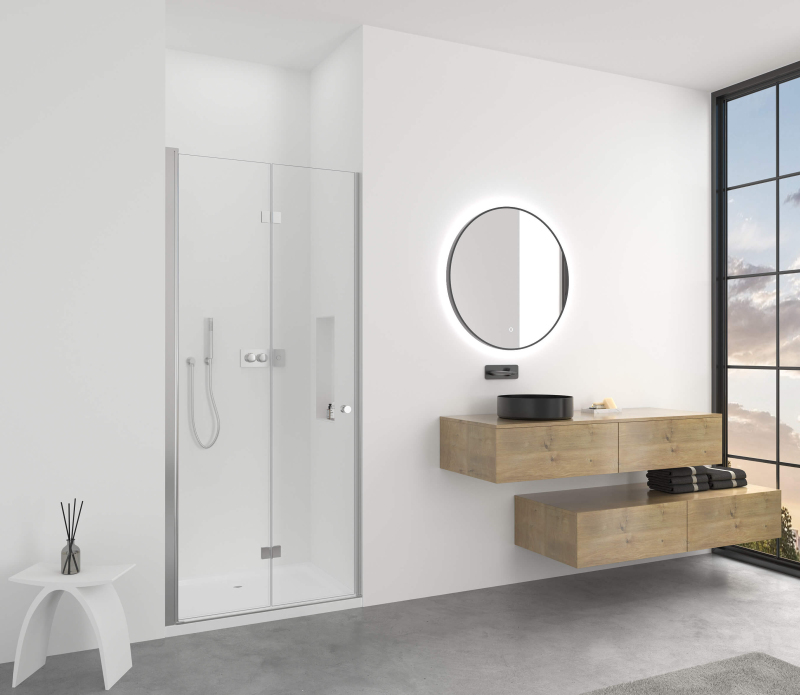 Dvere využívajú skladací (zalamovací) systém otvárania, ktorý je ideálny pre menšie kúpeľne s obmedzeným priestorom pred sprchovacím kútom. Dvere sú zavesené na zapustených pántoch so systémom pneumatického prizdvihnutia.