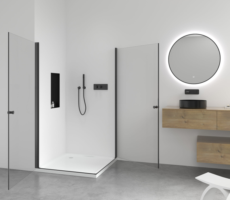 Dvere je možné otvárať dovnútra aj von, čo poskytuje maximálnu flexibilitu pri vstupe a pomáha minimalizovať únik vody.