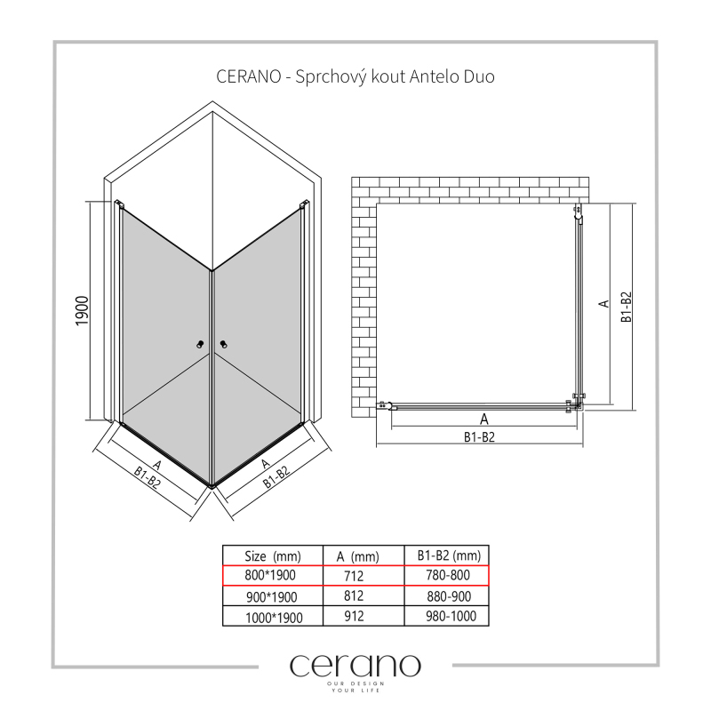 V rámci tejto série ponúkame širokú škálu rozmerov, aby sme uspokojili rôzne potreby našich zákazníkov. Všetky sprchové kúty, dvere a zásteny značky CERANO sú plne kompatibilné so sprchovými vaničkami CERANO v rovnakých rozmeroch, čo zaisťuje bezproblémovú inštaláciu a dokonalé zladenie.