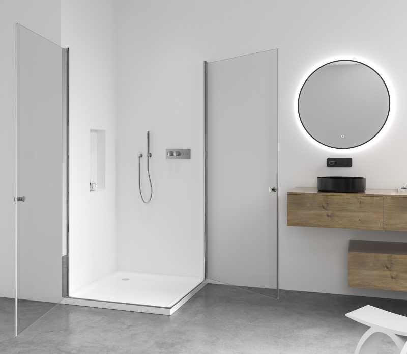 Dvere je možné otvárať dovnútra aj von, čo poskytuje maximálnu flexibilitu pri vstupe a pomáha minimalizovať únik vody.