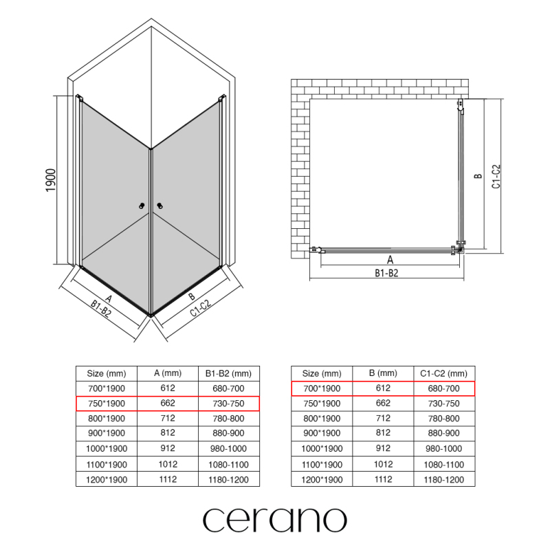 V rámci tejto série ponúkame širokú škálu rozmerov, aby sme uspokojili rôzne potreby našich zákazníkov. Všetky sprchové kúty, dvere a zásteny značky CERANO sú plne kompatibilné so sprchovými vaničkami CERANO v rovnakých rozmeroch, čo zaisťuje bezproblémovú inštaláciu a dokonalé zladenie.