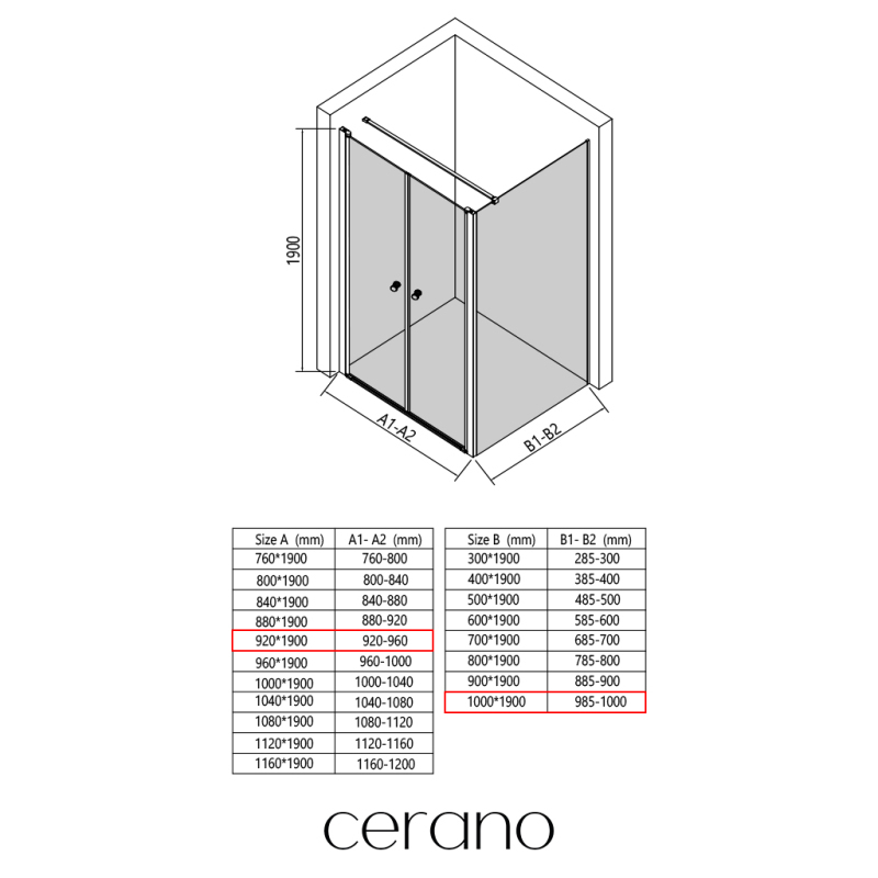 V rámci tejto série ponúkame širokú škálu rozmerov, aby sme uspokojili rôzne potreby našich zákazníkov. Všetky sprchové kúty, dvere a zásteny značky CERANO sú plne kompatibilné so sprchovými vaničkami CERANO v rovnakých rozmeroch, čo zaisťuje bezproblémovú inštaláciu a dokonalé zladenie.