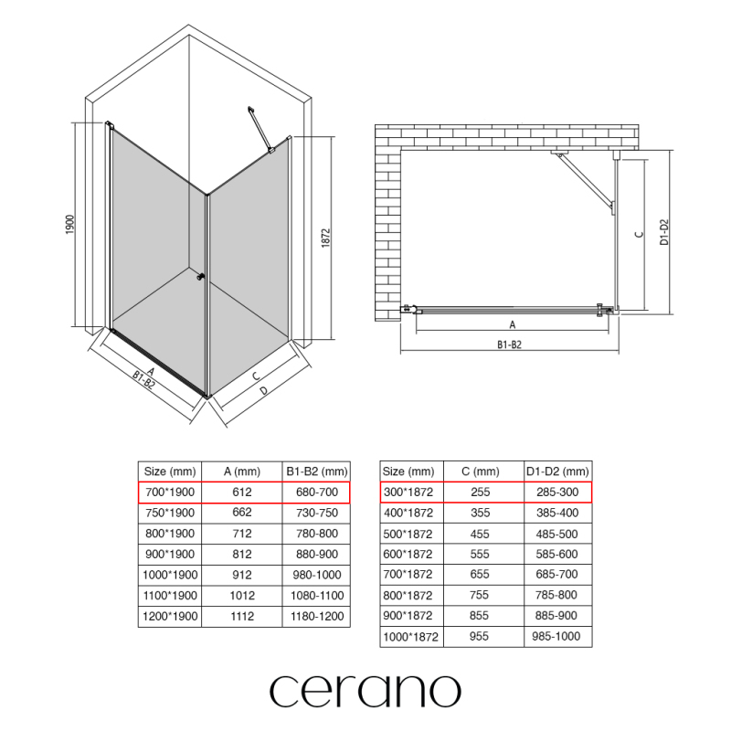 V rámci tejto série ponúkame širokú škálu rozmerov, aby sme uspokojili rôzne potreby našich zákazníkov. Všetky sprchové kúty, dvere a zásteny značky CERANO sú plne kompatibilné so sprchovými vaničkami CERANO v rovnakých rozmeroch, čo zaisťuje bezproblémovú inštaláciu a dokonalé zladenie.