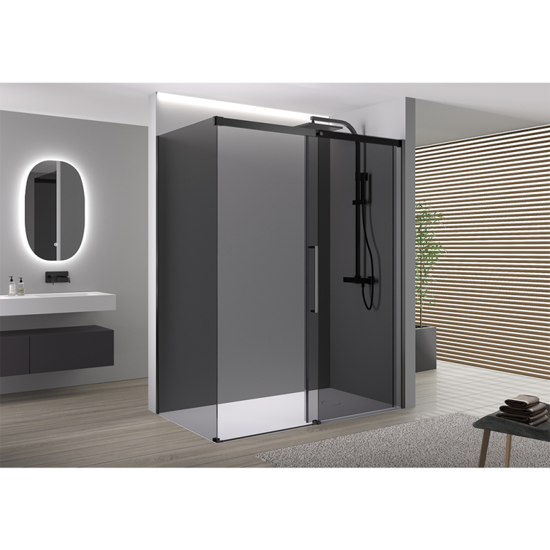 expedícia do 10 dníCERANO - Sprchovací kút Lantono L/P - 8 mm - Soft-Close - čierna matná, grafitové sklo - 100x90x195 cm - posuvný