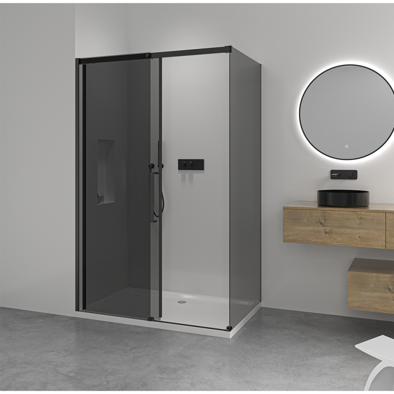 expedícia do 10 dníCERANO - Sprchovací kút Lantono L/P - 8 mm - Soft-Close - čierna matná, grafitové sklo - 100x90x195 cm - posuvný